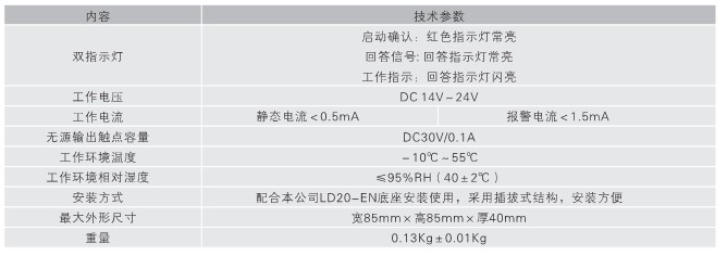 三、利達LD2002EN消火栓按鈕技術(shù)指標(biāo)