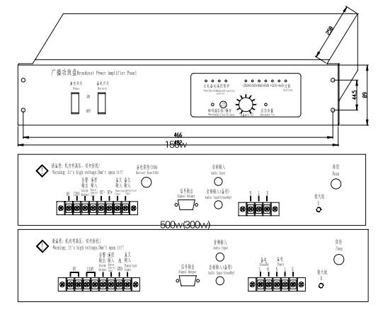 ☆遙控指示:當有DC24V/40mA加載到遙控端,遙控燈亮,功放進入預置音量廣播(音量預置:調整應急音量內藏旋鈕)。